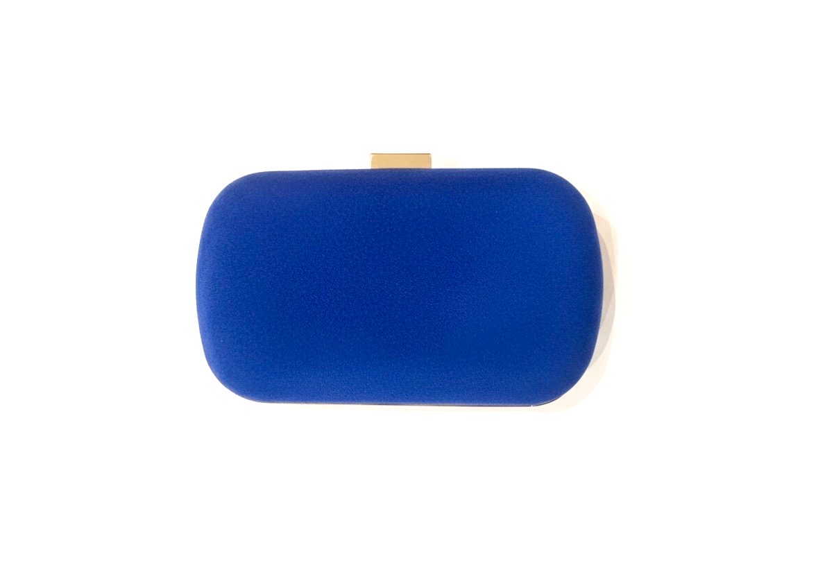 Bolso de mano, formato caja, de contorno metálico, forrado de antelina. En su interior lleva forro y asa de hombro extraible en cadena, para alternar la forma de llevarlo. Cierre mediante pieza metálica.